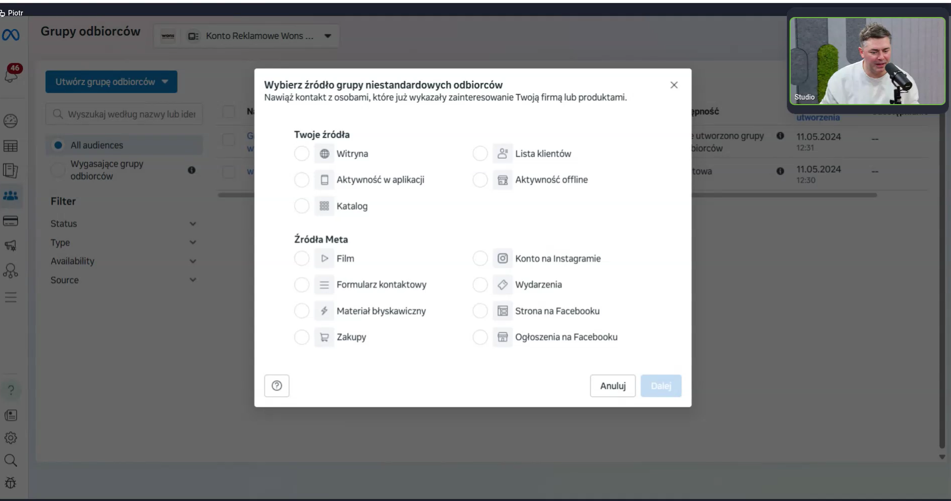 Piotrek szczegółowo omówił budowanie treści reklamowych, tworzenie skutecznych komunikatów oraz dopasowanie przekazu do grup odbiorców.